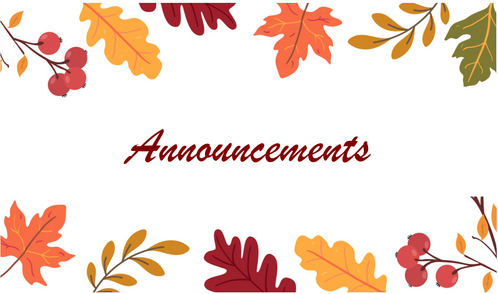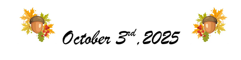 Our annual Harvest Festival will be Sunday October 12th from 1:00-3:30pm. We will have kids Sunday School but not adult classes. We'll eat soup together after church and get things set up! Please see back bulletin board to sign up to help. We also need candy donations and would like them brought to church by September 28th. Candy should be pieces that are individually wrapped.